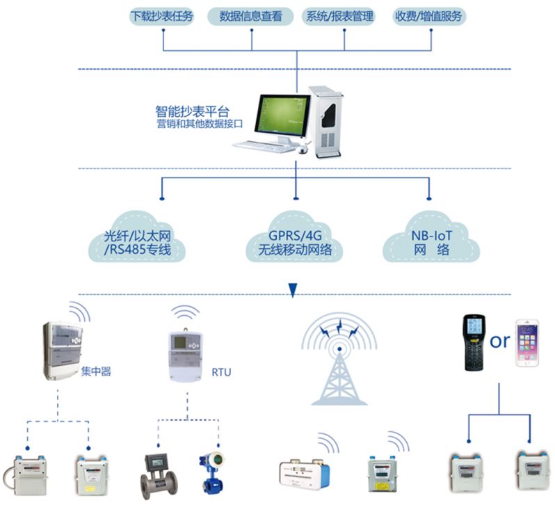 實現(xiàn)所有表計數(shù)據(jù)的統(tǒng)一采集、分級展示、異常報警、智能統(tǒng)計分析等功能。支持遠程閥控和預(yù)付費,支持遠程調(diào)價和階梯氣價,支持各類通訊協(xié)議(有線、無線、GPRS、NB-IoT等),支持人工抄表、移動APP抄表...