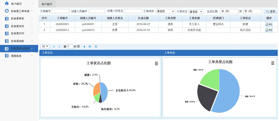 針對在冊水表,管理從水表購買、安裝、使用至水表報(bào)廢的生命周期過程,實(shí)現(xiàn)水表檔案的維護(hù)、水表的拆換復(fù)購檢等操作以及水表庫存管理等功能;對水表因故障或周期強(qiáng)檢換表等進(jìn)行分析和統(tǒng)計(jì),靈活查詢水表在線狀態(tài);主...